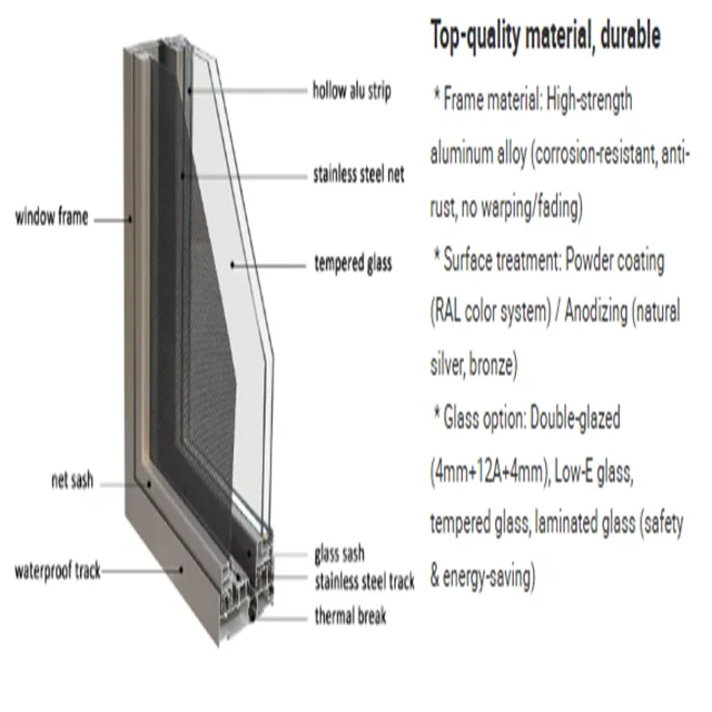 Aluminum Alloy Sliding Windows: Blend of Functionality & Elegance We use 3mm-16mm thickness of tempered glass, laminated glass.insulating glass, low-e glass.Aluminum alloy profile 1.2-2.0 thick-ness.A line is produced from cutting until installation.Crafted with high-grade aluminum alloy, our sliding windows redefine modern living with a perfect balance of performance and style. Designed for seamless operation, the precision-engineered sliding mechanism ensures smooth, effortless opening and closing ideal for both residential and commercial spaces where space efficiency matters. The corrosion-resistant aluminum frame boasts exceptional durability, standing up to harsh weather conditions from scorching sunlight to heavy rain without warping, rusting, or fading over time.